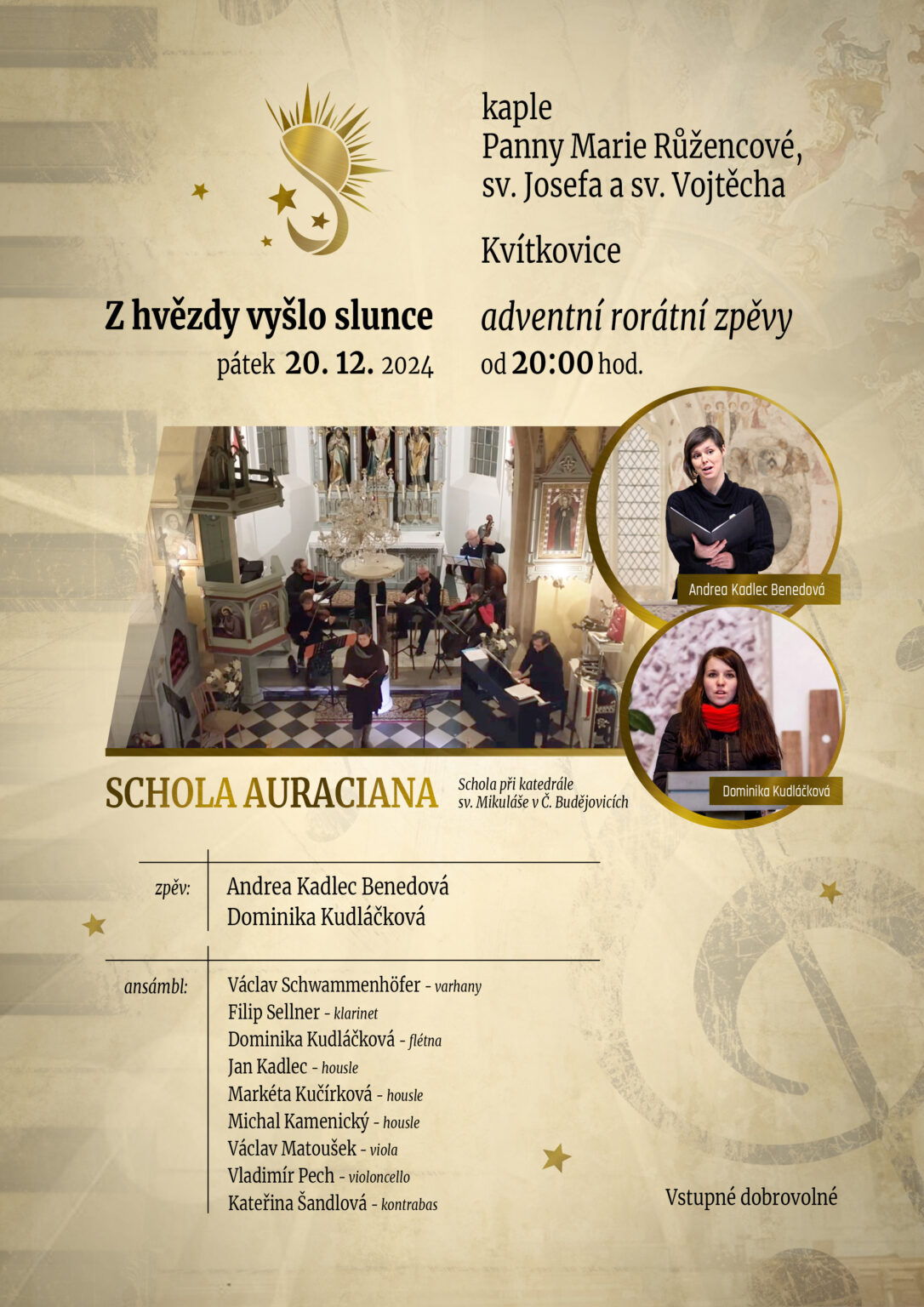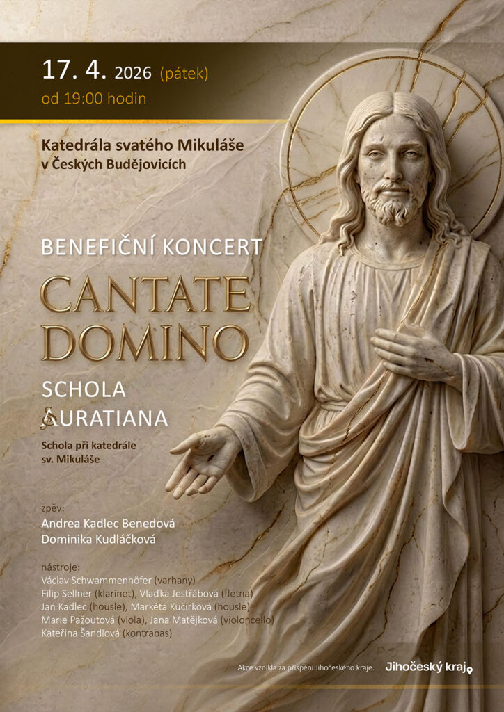 Srdečně vás zveme na velikonoční benefiční koncert Scholy Auratiana, který se uskuteční v majestátních prostorách českobudějovické katedrály. Přijďte s námi oslavit radostné období Velikonoc a zaposlouchat se do duchovní hudby napříč staletími.
